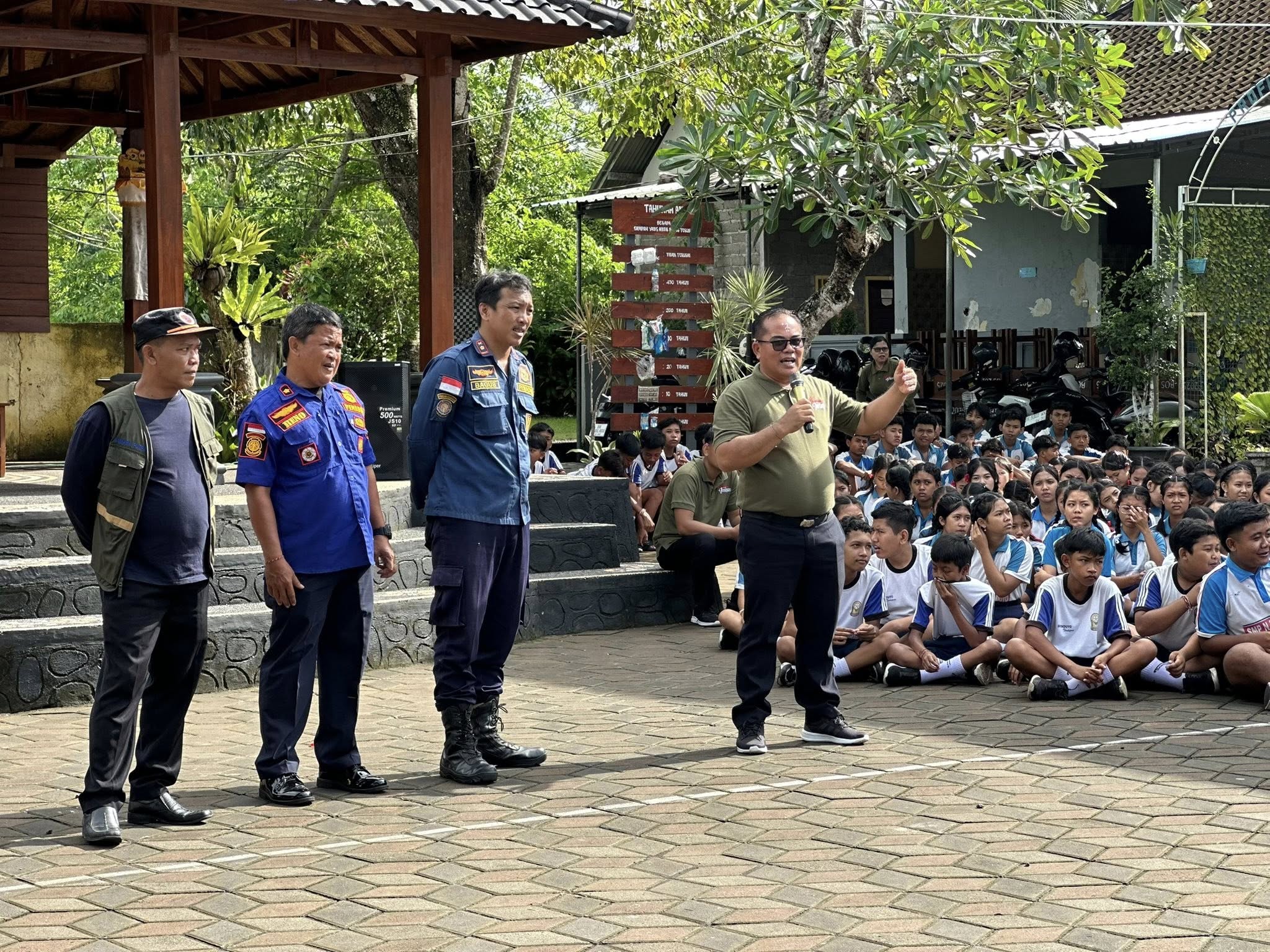 Kegiatan ini merupakan hasil sinergi antara SMP Negeri 2 Mendoyo, Kantor Satpol PP Kabupaten Jembrana yang menugaskan Kepala Seksi Damkarmat sebagai narasumber penanggulangan kebakaran, serta Kabid Penanggulangan dan Kesiapsiagaan dari Badan Penanggulangan Bencana Daerah (BPBD) Kabupaten Jembrana yang memberikan sosialisasi terkait mitigasi bencana gempa bumi. Kehadiran Bapak Kepala Bidang BPBD Kabupaten Jembrana dan Bapak Kepala Seksi Damkarmat Kabupaten Jembrana disambut hangat oleh Kepala SMP Negeri 2 Mendoyo, Bapak I Putu Gunarsa, S.Pd., M.Pd., sebagai bentuk dukungan penuh terhadap upaya peningkatan literasi dan kesiapsiagaan bencana di lingkungan SMP Negeri 2 Mendoyo sebagai Satuan Pendidikan Aman Bencana (SPAB).